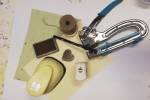 Ručný papier, je ich mnoho druhov, ja som použila krémový sľudový a zelený čajový, vyberte si tak, aby vám ladil s baliacim papiero, klasickú dierovačku, razítkovaciu podložku, dierovač na visačky, dierovač s razbou guľa, špagát, popisovač, ja som ešte použila srčiečko z kôry