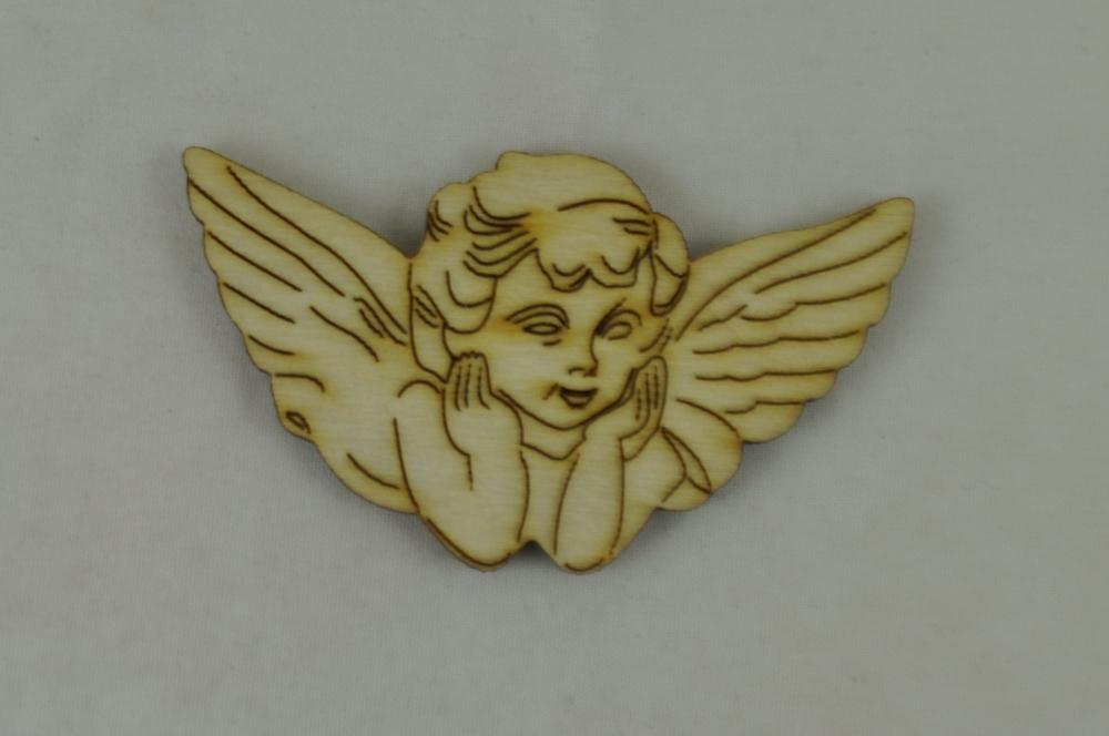 Drevený antický anjelik vypálený laserom z 3mm preglejky. Rozmer je 3,5x6cm. S jemnými detailami.