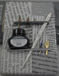 Luxusná sada obsahuje tuš na kaligrafickú maľbu, rúčku, 5ks pierok