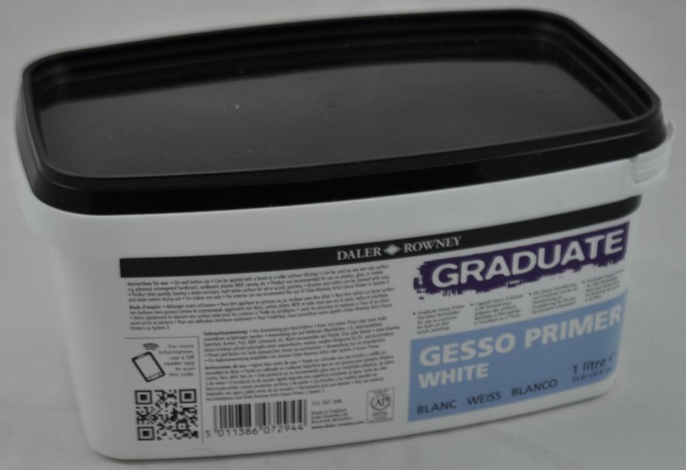 Gesso- podkladový náter na vodnej báze. Slúži na prípravu poréznych povrchov, na prípravu pláta na maľovanie. Jej použitie zabezpečí lepšiu priľnavosťostatných farieb.a materiálov. Objem 1 liter.
