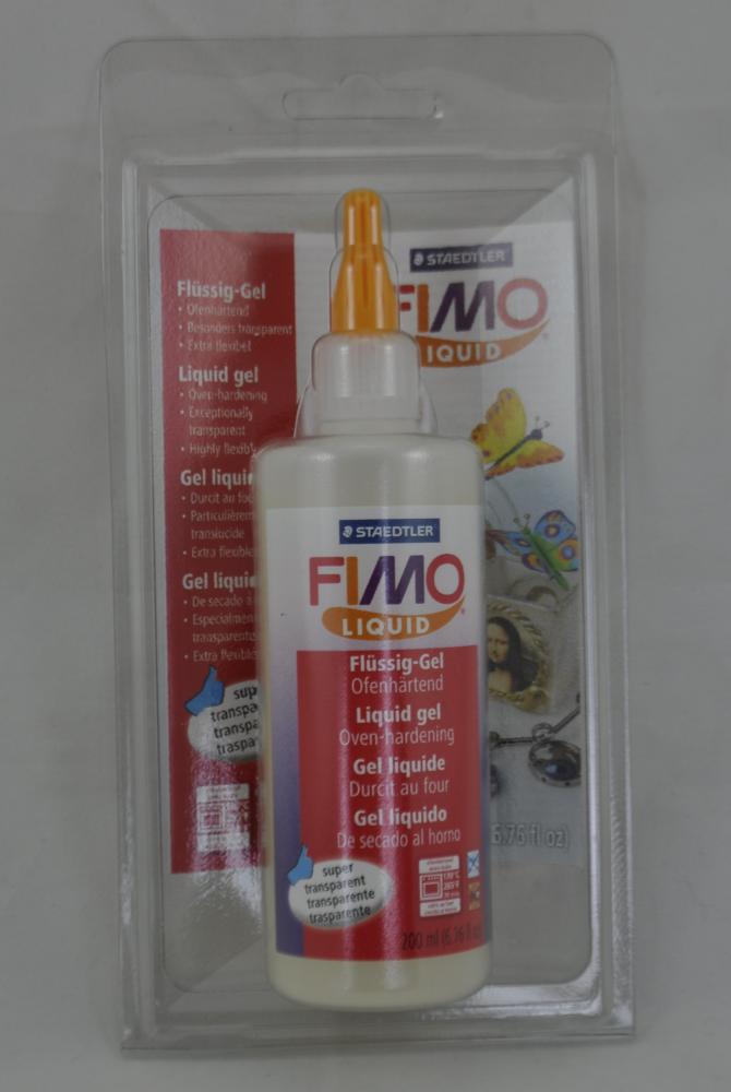 FIMO LIQUID 200ml- vypaľovací, transparentný, flexibilný. Vvypaľuje sa asi 30min. na 130 stupňov. Použitie: zatavenie obrázkov, fotografií, malých predmetov. Pre Fimo, Cernit a iné polymerové hmoty ako lak a lepidlo na výrobky. Dá sa miešať s olejovými farbami, púdrami, flitrami a pod.