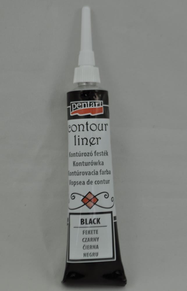 Kontúra na sklo reliéfna na vodnej báze, ktorou predkreslíme alebo zvýrazníme kontúry budúcich motívov. Nanášajte na odmastený povrch.