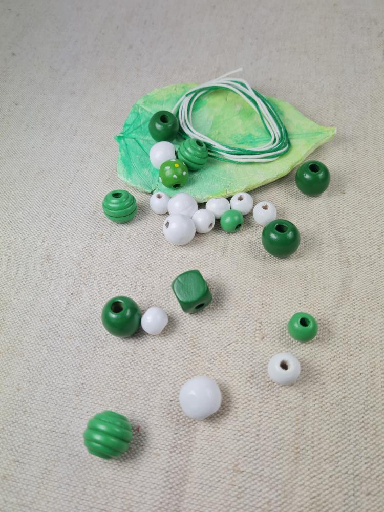 Sada obsahuje: 2x0,85cm bavlnenej šnúrky na navliekanie a mix korálok rôznych tvarov, veľkostí a farieb. Balenie 60g.