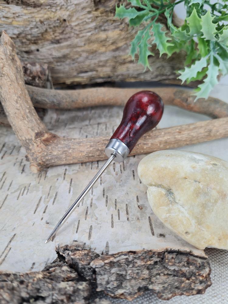 Skvelý pomocník pre spracúvaní tvrdých povrchov, koža, kartón, ... . Slúži na predierkovanie. Využiješ ho aj pri práci s pedigom. kovový hrot je pevne vsadený v rúčke. Nevymieňateľný.