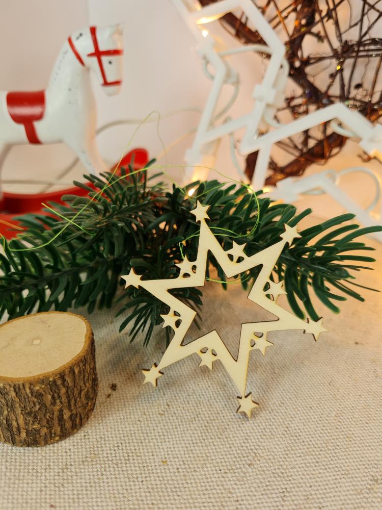 Krásna vianočná dekorácia, ktorá ozvláštni každý váš vianočný stromček, či dekoráciu. Vypálená laserom z 3 mm preglejky. Priemer 7cm